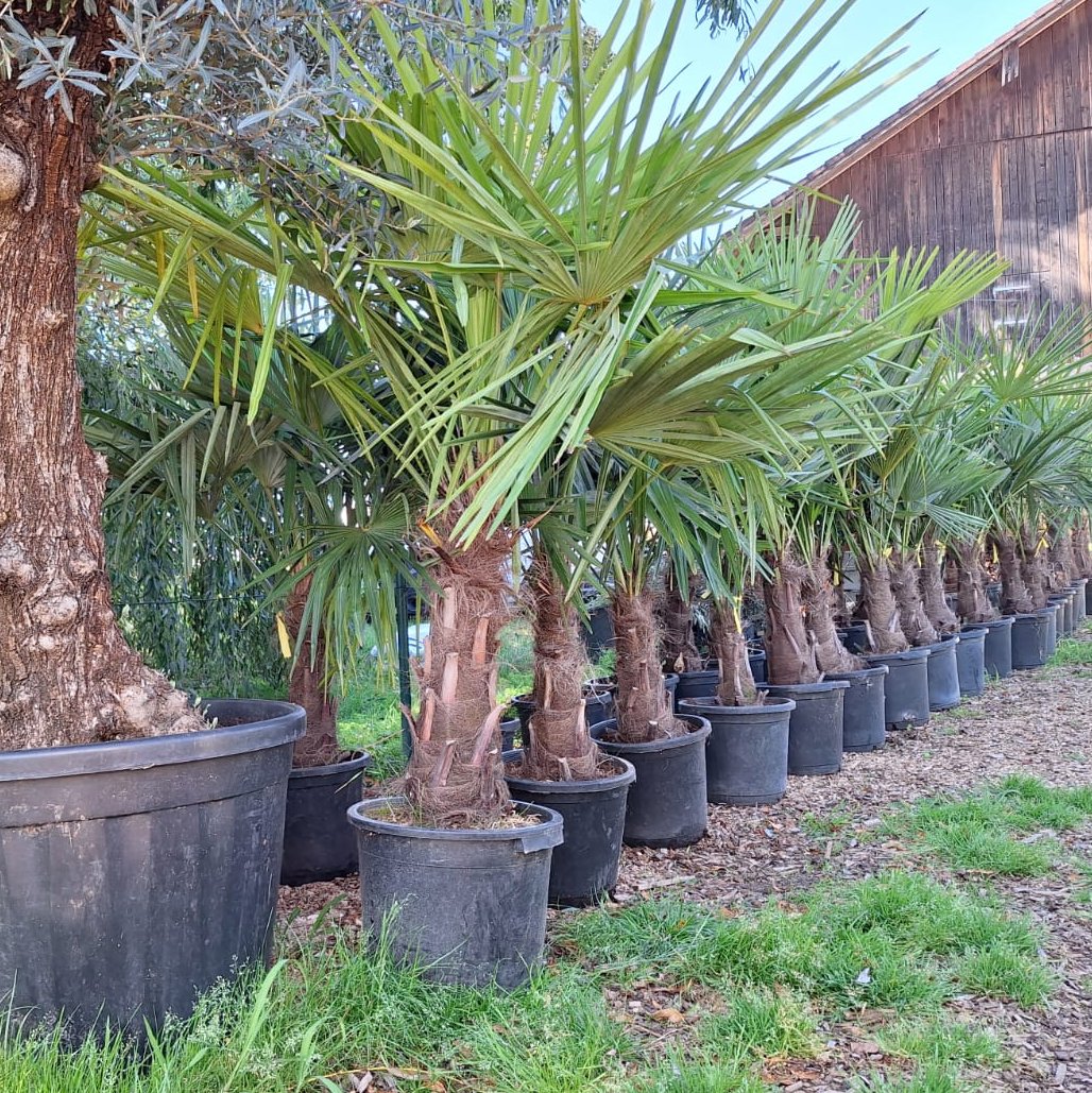 Unsere Hanfpalmen stammen aus Spanischer Kultur, sind gut durchwurzelt und wurden in unsere niederbayrische Gärtnerei akklimatisiert und an Frost gewöhnt.