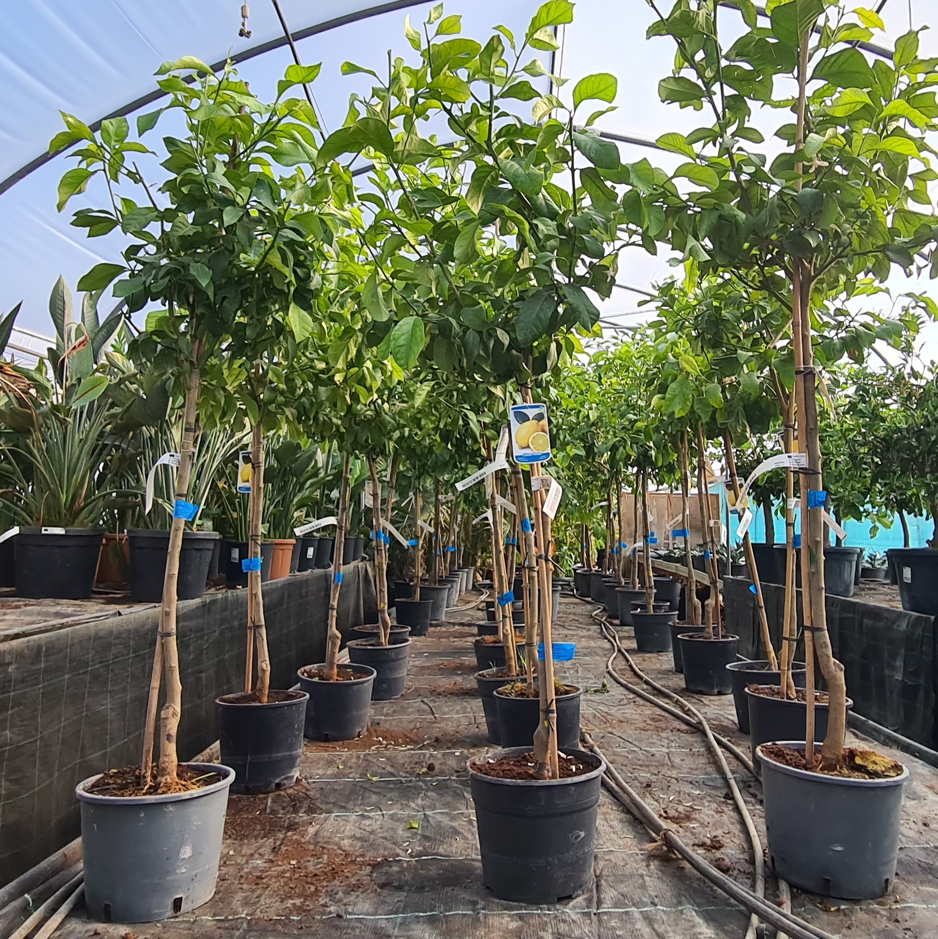 Zitruspflanzen sind auf der ganzen Welt beliebte mediterrane Kübelpflanzen. Der Standort sollte vollsonnig bis halbschattig sowie windgeschützt sein. Das Substrat sollte aus einem Gemisch aus Torf, Kompost, Bims und lehmiger Gartenerde bestehen. Zitruspflanzen lieben lehmige Substrate, vertragen aber keine Staunässe. Besondere Beachtung kommt auch dem Gießwasser zu. Erste Wahl ist hier Regenwasser. Sollte kein Regenwasser zur Verfügung stehen, sollte darauf geachtet werden, dass der pH- Wert des Gießwassers nicht in den alkalischen Bereich gerät, da die Pflanzen ansonsten das im Dünger enthaltende Eisen nicht verwerten können. Sofern der Härtegrad des Wassers sich im Bereich 1 und 2 bewegt kann man es bedenkenlos verwenden, Regenwasser ist aber immer die bessere Variante. Vom Frühjahr bis Herbst sollte man die Pflanzen 1-2-mal wöchentlich Düngen. Die Früchte der Zitruspflanzen haben ganz unterschiedliche Formen, die Zitronenbaumsorte „Buddha Hand“ , hat mit ihren gefingerten Früchten die kurioseste Form. Die Überwinterung muss frostfrei erfolgen. Die Temperatur sollte im Winterquartier je nach Art 3 –15 Grad Celsius betragen.