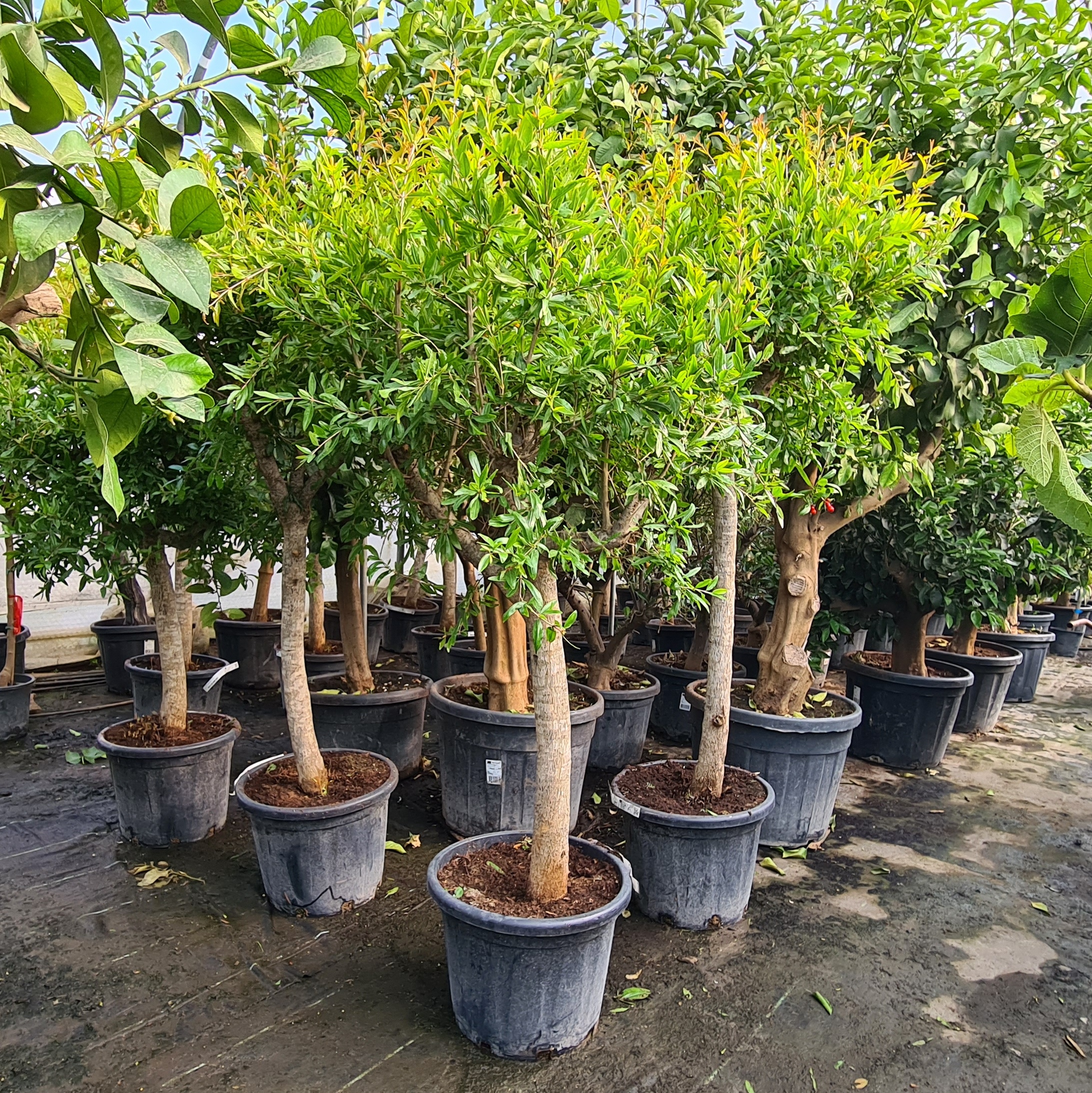 Granatapfelbaum Punica granatum mit 18-20 cm Stammumfang und 180-200 cm Gesamthöheim 35 Liter Container.